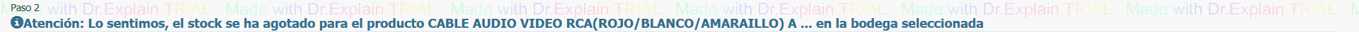 Mensaje al cargar Productos sin stock en bodega