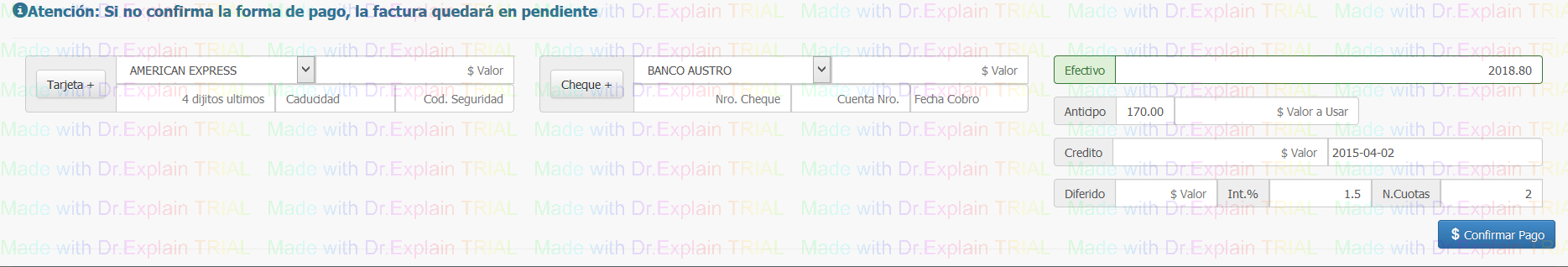 • En esta opcion se graba la factura, seguidamente pedira ARCHIVAR FORMA DE PAGO sino se aplica automaticamente la factura quedara en PENDEINTE/RESERVA