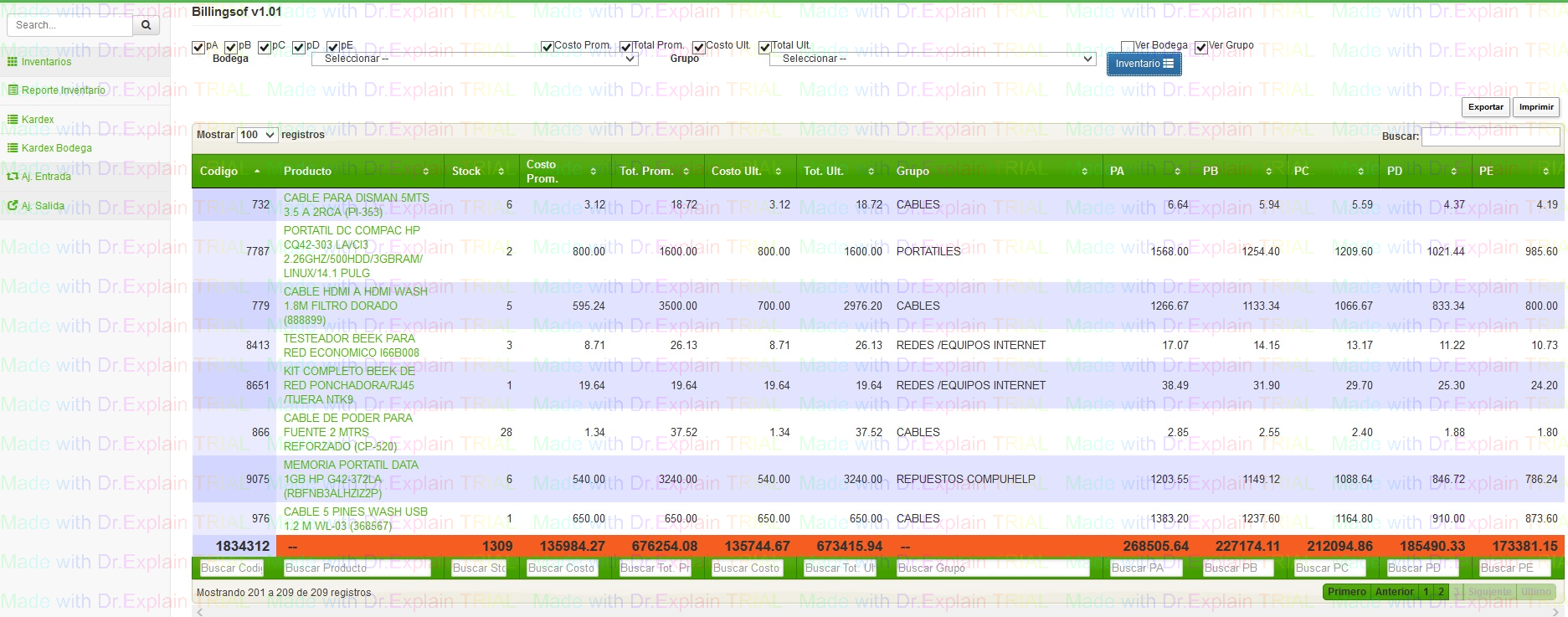 AL hacer click se mostrara un listado de opciones dentreo de la principal esta INVENTARIOS que es una completa herramienta para saber el stock , kardex y movimiento de los inventarios de la empresa.